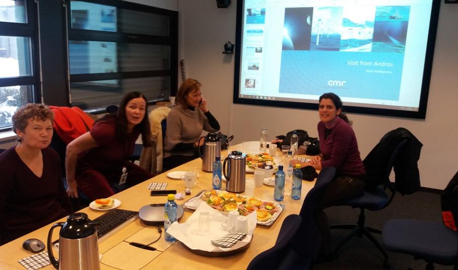 Τον Δήμο Άνδρου εκπροσώπησαν η πρόεδρος του Ν.Π.Δ.Δ. κυρία Αθηνά Τσατσομοίρου και η υπεύθυνη στην Τεχνική Υπηρεσία του Δήμου, κυρία Ειρήνη Παρλιάρου. Τις εκπροσώπους του Δήμου μας υποδέχτηκε στο Bergen η υπεύθυνη επιστήμονας της CMR κυρία Cirsti Midtomme, η οποία αρχικά, τις ξενάγησε στα γραφεία της εταιρείας που συνεργάζεται με το Κέντρο Ανανεώσιμων Πηγών Ενέργειας (ΚΑΠΕ) και τις Δότριες χώρες, στο πλαίσιο του προγράμματος. Η CMR, μεταξύ άλλων, συνεργάζεται και με τη NASA για την καλλιέργεια φυτών στο διάστημα. Να σημειωθεί δε, ότι η εν λόγω εταιρεία εξέδωσε δελτίο Τύπου για την επίσκεψη των εκπροσώπων του Δήμου Άνδρου.