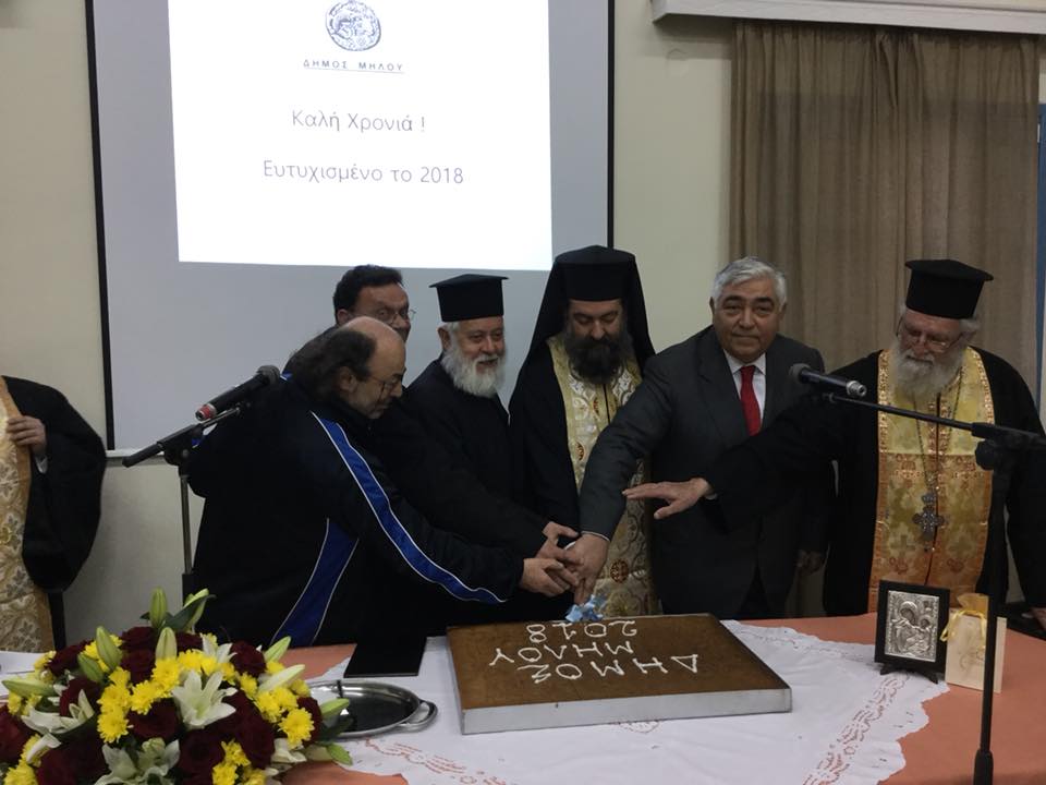 Την Κυριακή 28 Ιανουαρίου 2018, πραγματοποιήθηκε στην αίθουσα εκδηλώσεων του Δήμου Μήλου, η καθιερωμένη κοπή της Πρωτοχρονιάτικης πίτας. Την εκδήλωση ευλόγησαν οι Σεβαστοί Πατέρες της Μήλου και μετέφεραν τις εγκάρδιες ευχές του Σεβασμιότατου Μητροπολίτη Σύρου - Μήλου κ. κ. Δωρόθεου Β’.Στην κατάμεστη αίθουσα παρευρέθηκαν ο Διοικητής του 1ου Λόχου Εθνοφυλακής, ο Διοικητής της Αστυνομίας, ο Λιμενάρχης, Δημοτικοί & Τοπικοί Σύμβουλοι, εκπρόσωποι φορέων και συλλόγων και πολλοί δημότες.