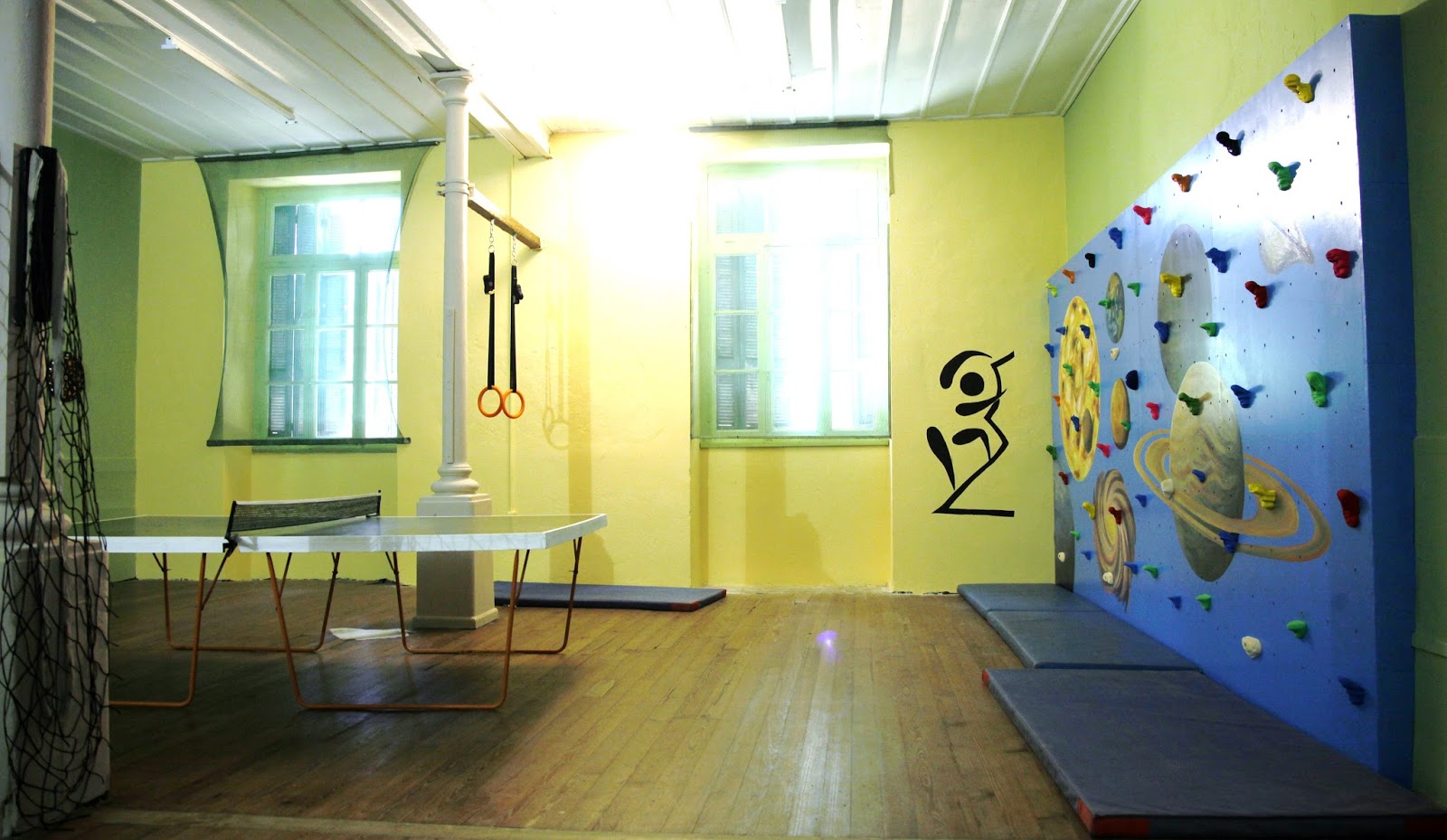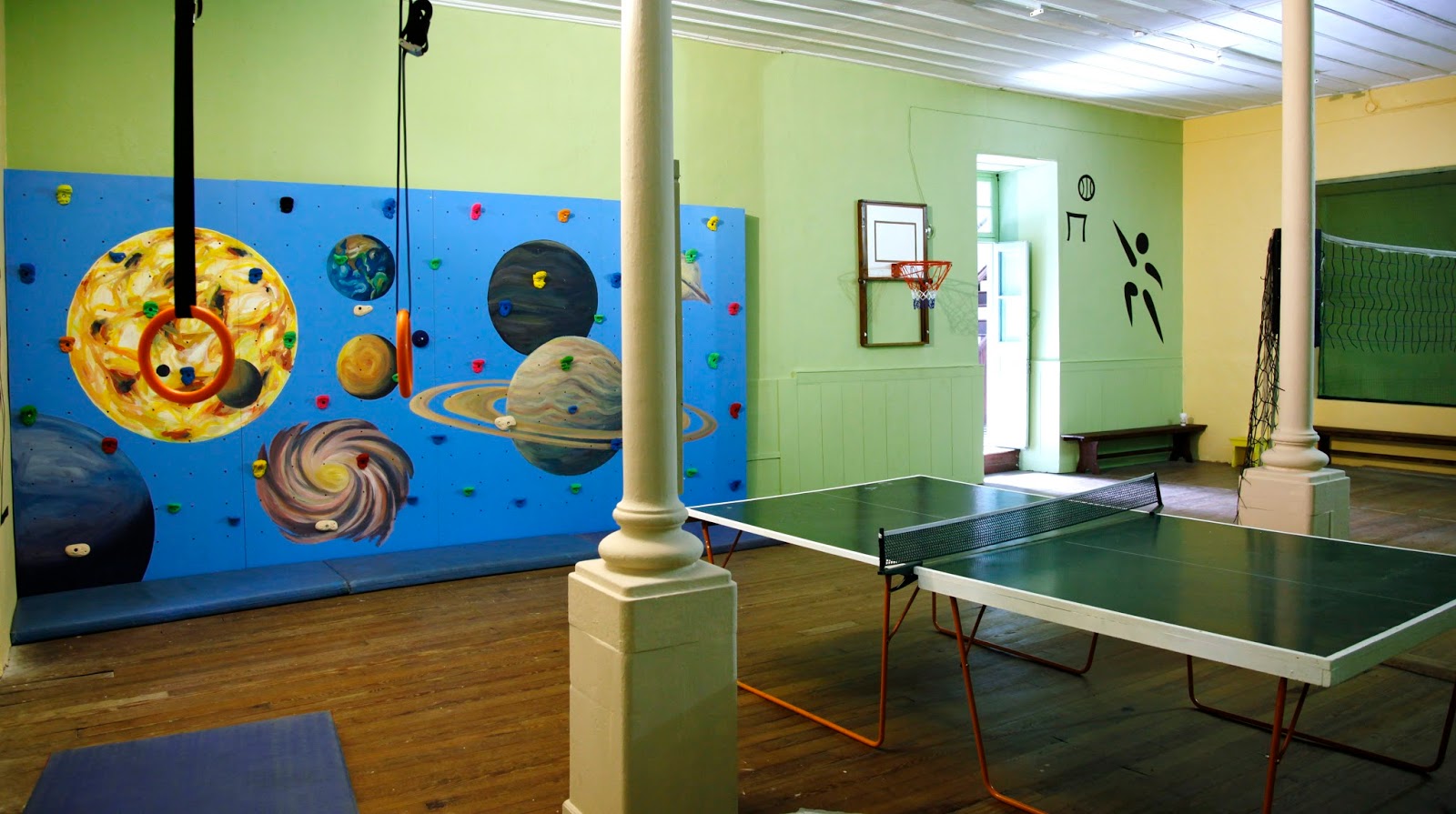 Επίσης στο χώρο έγιναν πολλές αλλαγές! Βάφτηκαν οι τοίχοι, τοποθετήθηκαν προβολείς και προστατευτικά στα παράθυρα, κατασκευάστηκαν αποθηκευτικά ράφια και πάγκοι για την ξεκούραση των παιδιών.