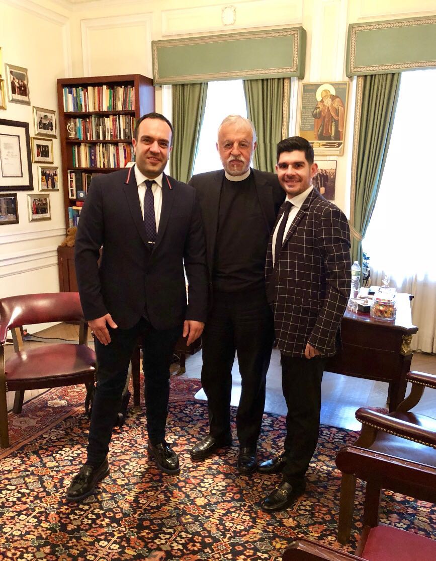 Στη συνέχεια οι δυο άνδρες είχαν συνάντηση με τον αιδεσιμολογιώτατο πρωτοπρεσβύτερο του Οικουμενικού Θρόνου π. Αλέξανδρο Καρλούτσο, ο οποίος έχει συμβάλλει καθοριστικά στην ανάπτυξη και ισχυροποίηση της ελληνορθόδοξης ομογένειας στις ΗΠΑ.