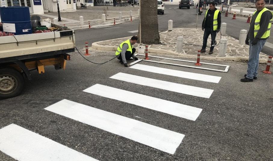 Σε εξέλιξη βρίσκεται το έργο των διαγραμμίσεων των διαβάσεων πεζών σε διάφορα σημεία του Δήμου Πάρου με προτεραιότητα στις εισόδους των σχολικών μονάδων και σε δρόμους με αυξημένη κίνηση. Στόχος είναι οι εργασίες να ολοκληρωθούν πριν από την εορταστική περίοδο του Πάσχα, όπου παρουσιάζεται σημαντική αύξηση της τουριστικής κίνησης και του κυκλοφοριακού φόρτου στο οδικό δίκτυο.