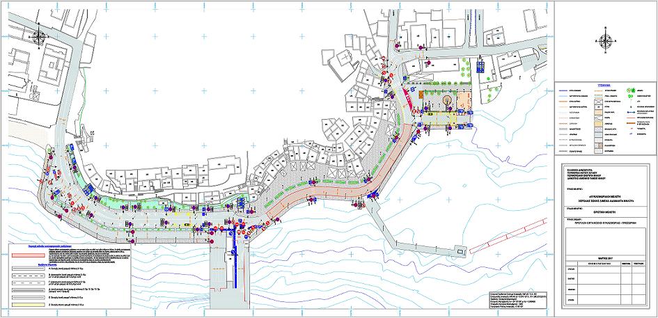 Υπενθυμίζεται, ότι, σύμφωνα με την κυκλοφοριακή μελέτη της χερσαίας ζώνης του λιμένα του Αδάμαντα, περαν των ειδικών κυκλοφοριακών ρυθμίσεων, προτείνεται, κατά μήκος του αναπτύγματος του κεντρικού λιμένα Αδάμαντα, η κίνηση των οχημάτων να οργανώνεται σε δυο λωρίδες κυκλοφορίας πλάτους 3,25 μ. αντίθετης κατεύθυνσης και η διαμόρφωση νέας οριζόντιας σήμανση (διαγραμμίσεις ρευμάτων κυκλοφορίας, διαγραμμίσεις αποκλεισμού, διαβάσεις πεζών, βέλη κατεύθυνσης κτλ.) καθώς και νέα κατακόρυφη σήμανση (πινακίδες ρυθμιστικές, πληροφοριακές κτλ.).