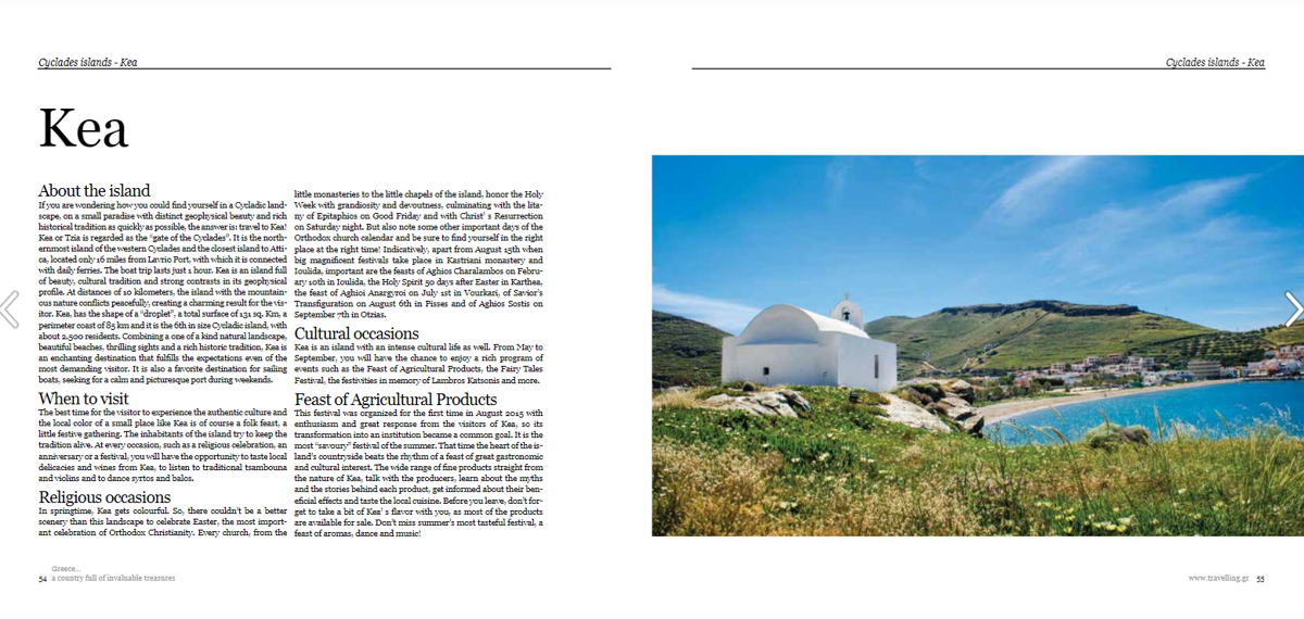 Τετρασέλιδο αφιέρωμα για την Κέα φιλοξένησε το έντυπο περιοδικό Travelling Exclusive Edition στην τελευταία του έκδοση