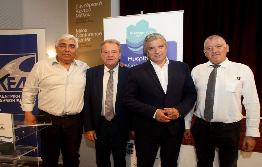 Τον Πρόεδρο της ΚΕΔΕ συνόδευαν ο Επιστημονικός συνεργάτης της ΚΕΔΕ στα θέματα Τουρισμού και Σύμβουλος του Δήμου Μήλου Νότης Μαρτάκης και η αναπληρώτρια διευθύντρια της Κεντρικής Ένωσης Δήμων κυρία Λουκάκη και υπηρεσιακοί παράγοντες.