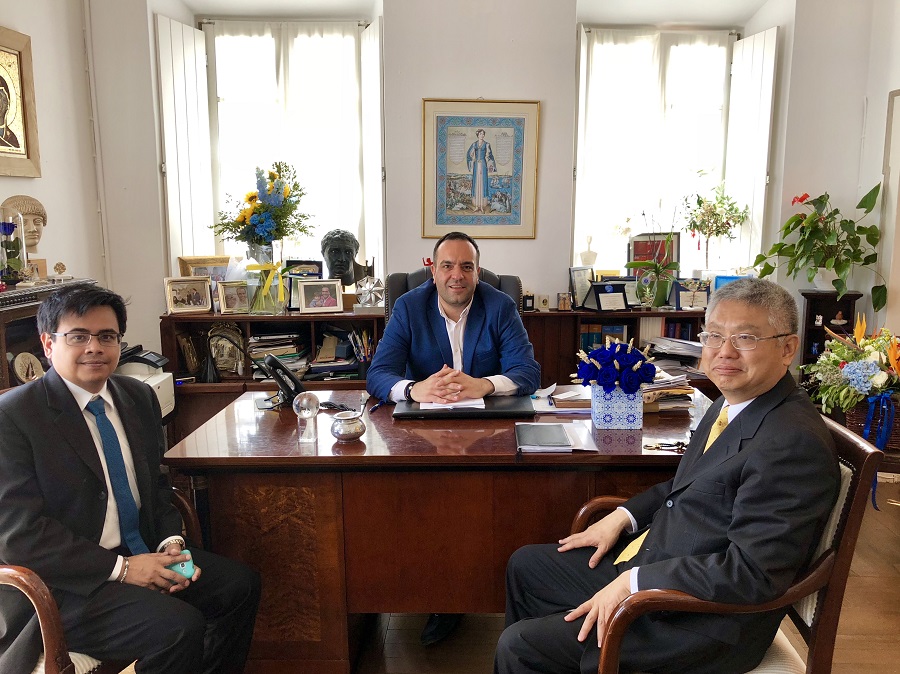 Συνάντηση με τον Πρέσβη της Ταϊλάνδης στην Ελλάδα κ. Chailert Limsomboon και τον Πρόξενο κ. Juckarin Charoenphuk είχε στο Δημαρχείο Μυκόνου ο Δήμαρχος κ. Κωνσταντίνος Κουκάς.