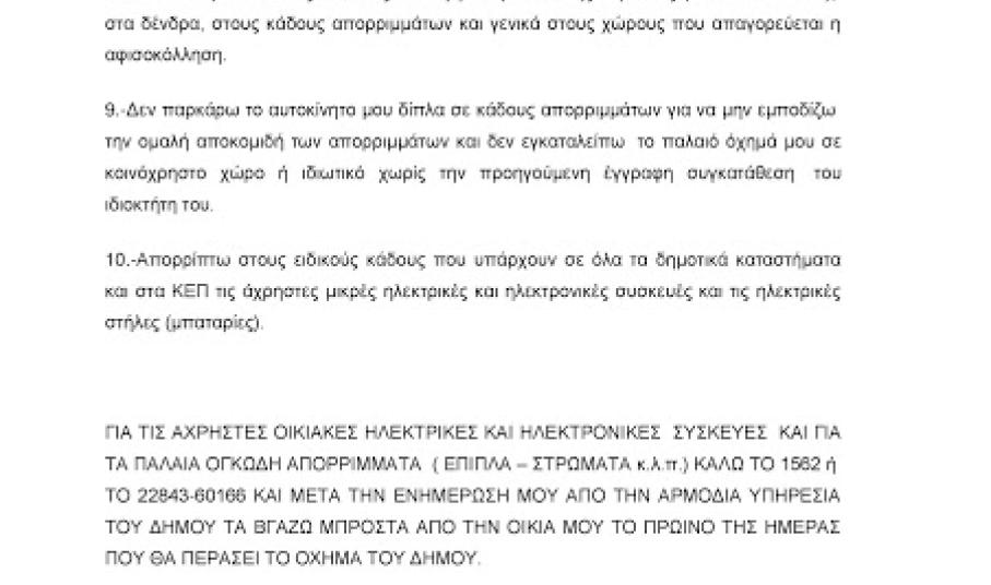 Παρακαλούμε τους κατοίκους και τους επιχειρηματίες, για το επόμενο χρονικό διάστημα και εν μέσω της τουριστικής περιόδου, να δείξουν κατανόηση και να συνδράμουν το έργο μας ακολουθώντας τον επικαιροποιημένο οδηγό καθαριότητας που σας επισυνάπτουμε. Επίσης, στο τηλέφωνο 2284360166 υποδεχόμαστε τις επισημάνσεις των πολιτών για τα σημεία που χρήζουν τη προσοχή της υπηρεσίας.