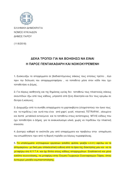 Στον αγώνα για να διασφαλίσουμε την υγιεινή και να διατηρήσουμε το νησί μας καθαρό, είμαστε ΟΛΟΙ ΜΑΖΙ και ΟΛΟΙ ΑΠΑΡΑΙΤΗΤΟΙ