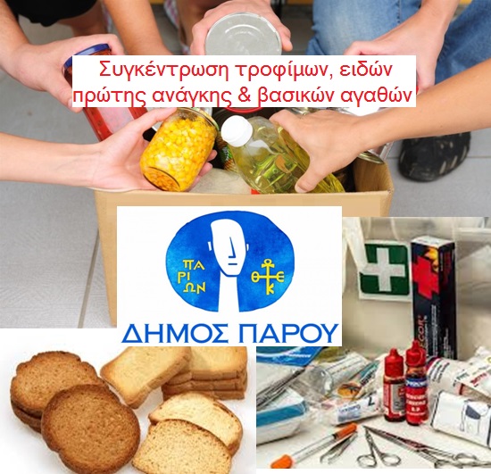 Ο Δήμος Πάρου ανακοινώνει τη συγκέντρωση τροφίμων, ειδών πρώτης ανάγκης και βασικών αγαθών για τους πληγέντες από τις καταστροφικές πυρκαγιές, στο Δημαρχείο Πάρου, στο Γραφείο της Αντιδημάρχου Δώρας Σαρρή-Παπακυρίλλου, καθημερινά από τις 7:30 έως τις 16:00.