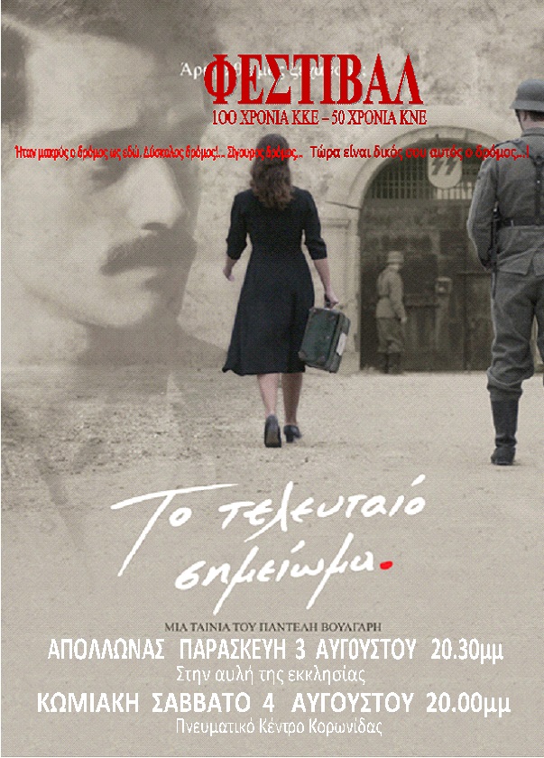 Προβολή της ταινίας "Το τελευταίο σημείωμα" του Π. Βούλγαρη