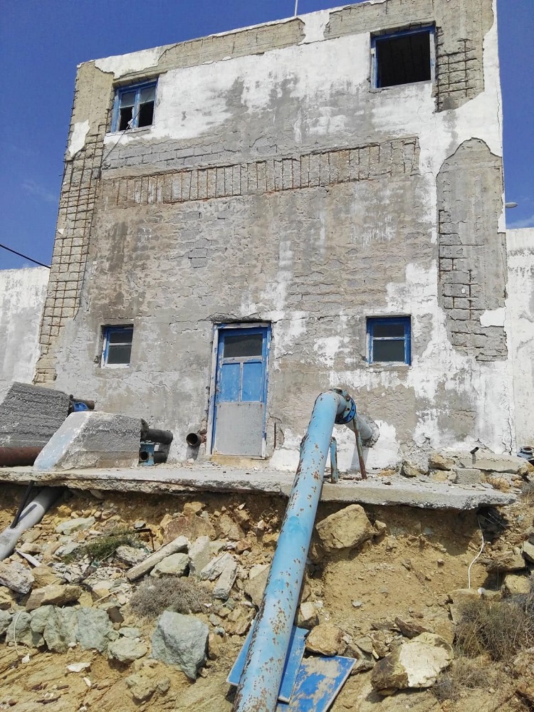 Σε επιτόπια αυτοψία, που πραγματοποιήσαμε στο αντλιοστάσιο διαπιστώσαμε, ότι είναι ξέφραγο, εύκολα προσβάσιμο στον καθένα, σε πτηνά και τρωκτικά και σε σχεδόν ετοιμόρροπη κατάσταση.