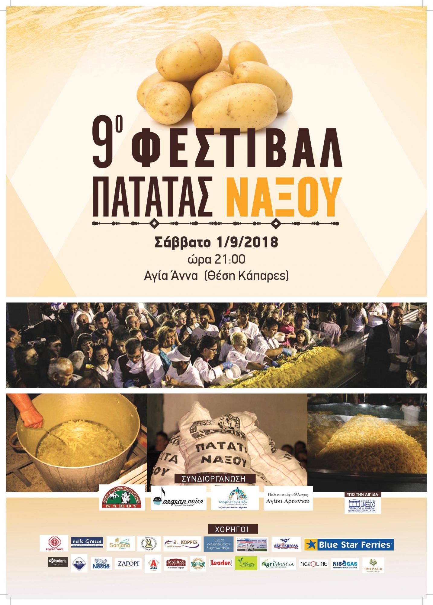 Η Ένωση Αγροτικών Συνεταιρισμών Νάξου, σε συνεργασία με τον Πολιτιστικό Σύλλογο Αγίου Αρσενίου και την Περιφέρεια Νοτίου Αιγαίου και υπό την αιγίδα της UNESCO, πραγματοποιεί το 9Ο Φεστιβάλ Πατάτας Νάξου, το μεγαλύτερο αγροτικό φεστιβάλ των Κυκλάδων και καταρρίπτει το ρεκόρ Guinness για την μεγαλύτερη μερίδα με τηγανητές πατάτες Νάξου.