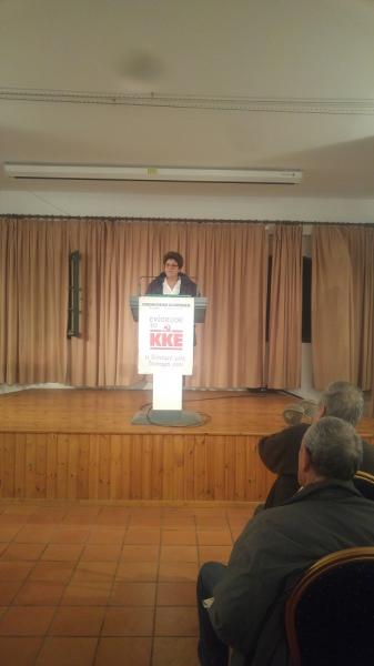 Στη συνέχεια ακολούθησε η κεντρική ομιλία από τον Χρήστο Κατσώτη, μέλος της ΚΕ και βουλευτή του ΚΚΕ. Μετά την ομιλία ακολούθησε συζήτηση.