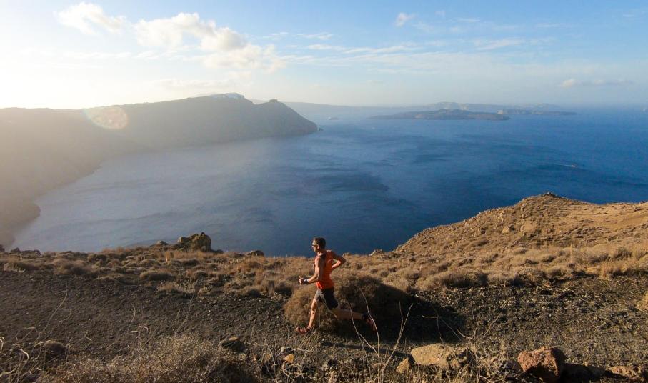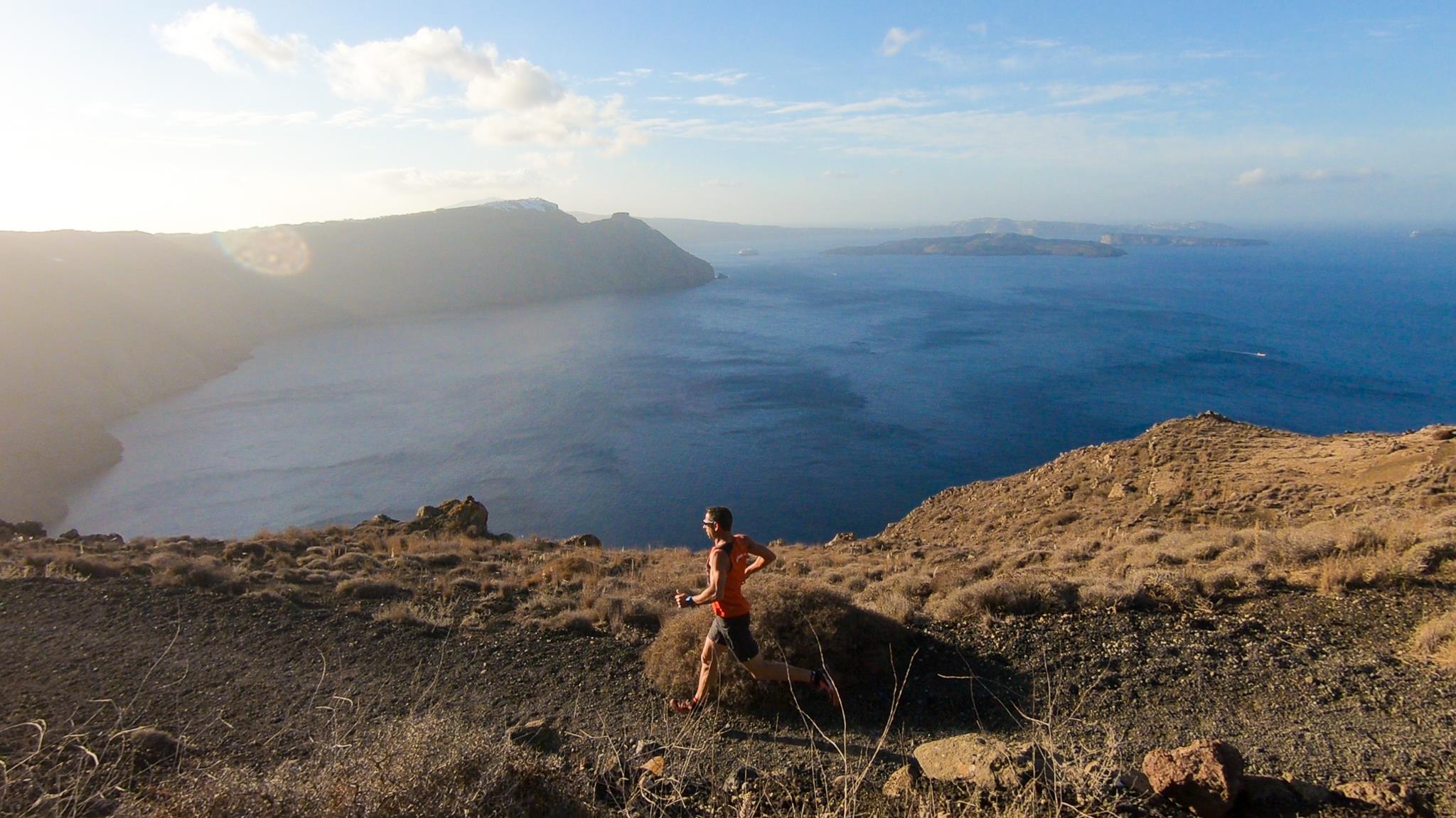 Οι λάτρεις του τρεξίματος θα έχουν την ευκαιρία να απολαύσουν τις τρεις καθιερωμένες διαδρομές, πάνω στην Καλντέρα, με θέα τις μαγευτικές εικόνες του ηφαιστείου και φόντο τους οικισμούς Ημεροβίγλι, Φηροστεφάνι και Οία. Συγκεκριμένα, η διαδρομή 5 χλμ. «Αριστείδης Αλαφούζος» αφορά στο τρέξιμο και δυναμικό περπάτημα, αυτή των 10 χλμ. τους πιο έμπειρους στις αποστάσεις και η απόσταση των 15 χλμ. αυτούς που αγαπούν την δύναμη, την αντοχή, και την αδρεναλίνη. Όλες οι διαδρομές έχουν ως αφετηρία το εργοστάσιο αφαλάτωσης στην Οία, με σημεία χωμάτινης διαδρομής και τερματισμό πάλι στην Οία. Οι διαδρομές έχουν σχεδιαστεί από τον πρώην μαραθωνοδρόμο, κάτοχο της πανελλήνιας επίδοσης στην κλασική διαδρομή, προπονητή τρεξίματος και διευθυντή της All About Running, Νίκο Πολιά.