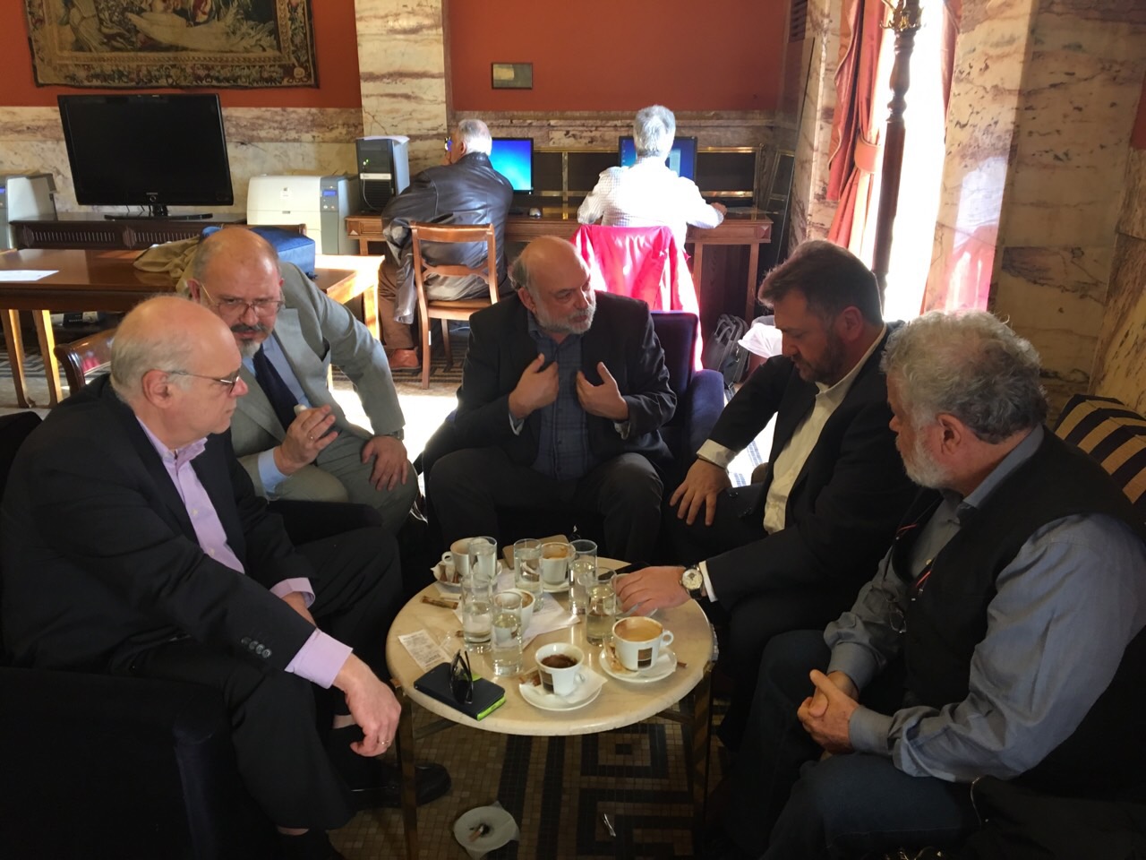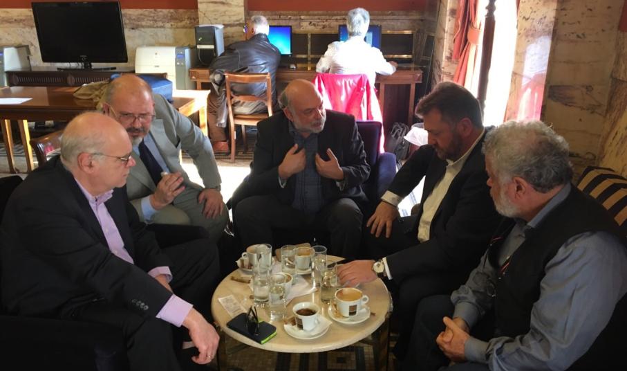 Με διεξοδική συζήτηση για τα προβλήματα που απασχολούν την Σαντορίνη, τη Θηρασιά και τους κατοίκους της, έγινε η συνάντηση μεταξύ των βουλευτών του ΣΥΡΙΖΑ Ν. Συρμαλένιου, Αντώνη Συρίγου , Ν. Μάνιου καθώς και με την παρουσία του Κοινοβουλευτικού εκπροσώπου του ΣΥΡΙΖΑ Ν. Ξυδάκη και του Δημοτικού Συμβούλου και υποψηφίου Δημάρχου Θήρας Μανόλη Ορφανού στη Βουλή.