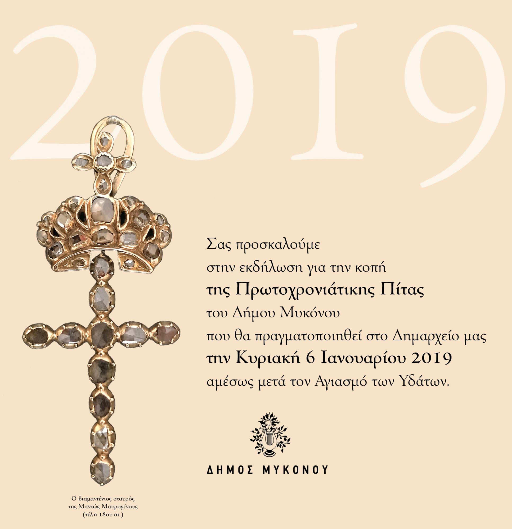 Ο Δήμος Μυκόνου υποδέχεται το νέο έτος Παρασκευή 4 Ιανουαρίου 2019 - 16:16 Ο Δήμος Μυκόνου υποδέχεται το 2019 την Κυριακή 6 Ιανουαρίου μετά τον Αγιασμό των Υδάτων. Διαφήμιση #δόντια #ελληνικό FBI #κοπή πίτας