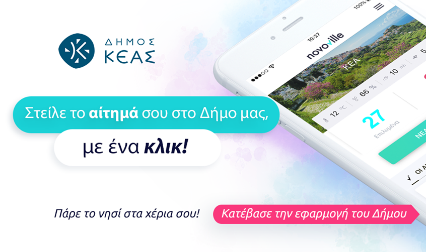 Σύμφωνα με το Δήμαρχο Κέας, κ. Ιωάννη Ευαγγέλου, ο Δήμος συμμετέχει εδώ και μερικούς μήνες στην εφαρμογή για κινητά και τάμπλετ “Novovlille”, η οποία επιτρέπει στους δημότες να καταθέτουν οποιαδήποτε παρατήρησή τους προς τις υπηρεσίες του Δήμου, ενώ παράλληλα και ο Δήμος, έχει τη δυνατότητα να λαμβάνει αμεσότερα την άποψη των δημοτών, σχετικά με σημαντικά θέματα, εφόσον το επιθυμεί.