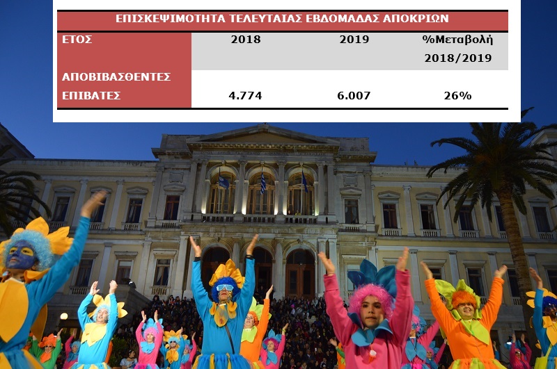 Αξίζει να σημειωθεί ότι, σύμφωνα με τα επίσημα στοιχεία του Λιμεναρχείου Σύρου, η επισκεψιμότητα για την τελευταία εβδομάδα των Αποκριών έσπασε όλα τα ρεκόρ, παρουσιάζοντας, τουλάχιστον σε σχέση με το αντίστοιχο διάστημα του προηγούμενου έτους, αύξηση της τάξεως του 26%. Αναλυτικά: