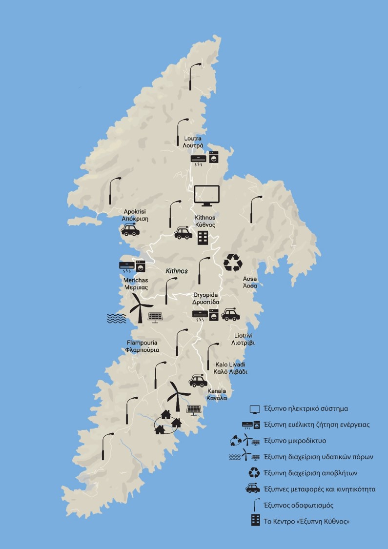 Για τα επόμενα χρόνια, η Κύθνος θα αποτελέσει ένα «ζωντανό εργαστήρι» σχεδιασμού και υλοποίησης καινοτόμων τεχνολογικών λύσεων για την αναβάθμιση και ολοκληρωμένη διαχείριση των τοπικών υποδομών ενέργειας, υδατικών πόρων, αποβλήτων, μεταφορών και οδοφωτισμού. Οι συγκεκριμένες παρεμβάσεις θα συμβάλουν στην ανάδειξη της Κύθνου ως προορισμό εναλλακτικού τουρισμού, θα διευρύνουν την τουριστική περίοδο ενώ παράλληλα δύναται να στηρίξουν τη λειτουργική διασύνδεση πρωτογενούς, δευτερογενούς και τριτογενούς τομέα στο πλαίσιο μετάβασης της τοπικής οικονομίας σε ένα έξυπνο, βιώσιμο και φιλικό προς το περιβάλλον παραγωγικό μοντέλο.