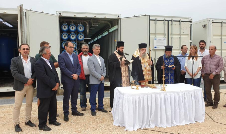 Το έργο που εγκαινιάστηκεσήμερα το πρωί αφορά στην κατασκευή των συνοδών έργων για τη λειτουργία των μονάδων αφαλάτωσης,απόδοσης 2.500 m3/hπόσιμου νερού ημερησίως,με τη μέθοδο της αντίστροφης όσμωσης,στη θέση «Πέπονας» στην Παροικιά.