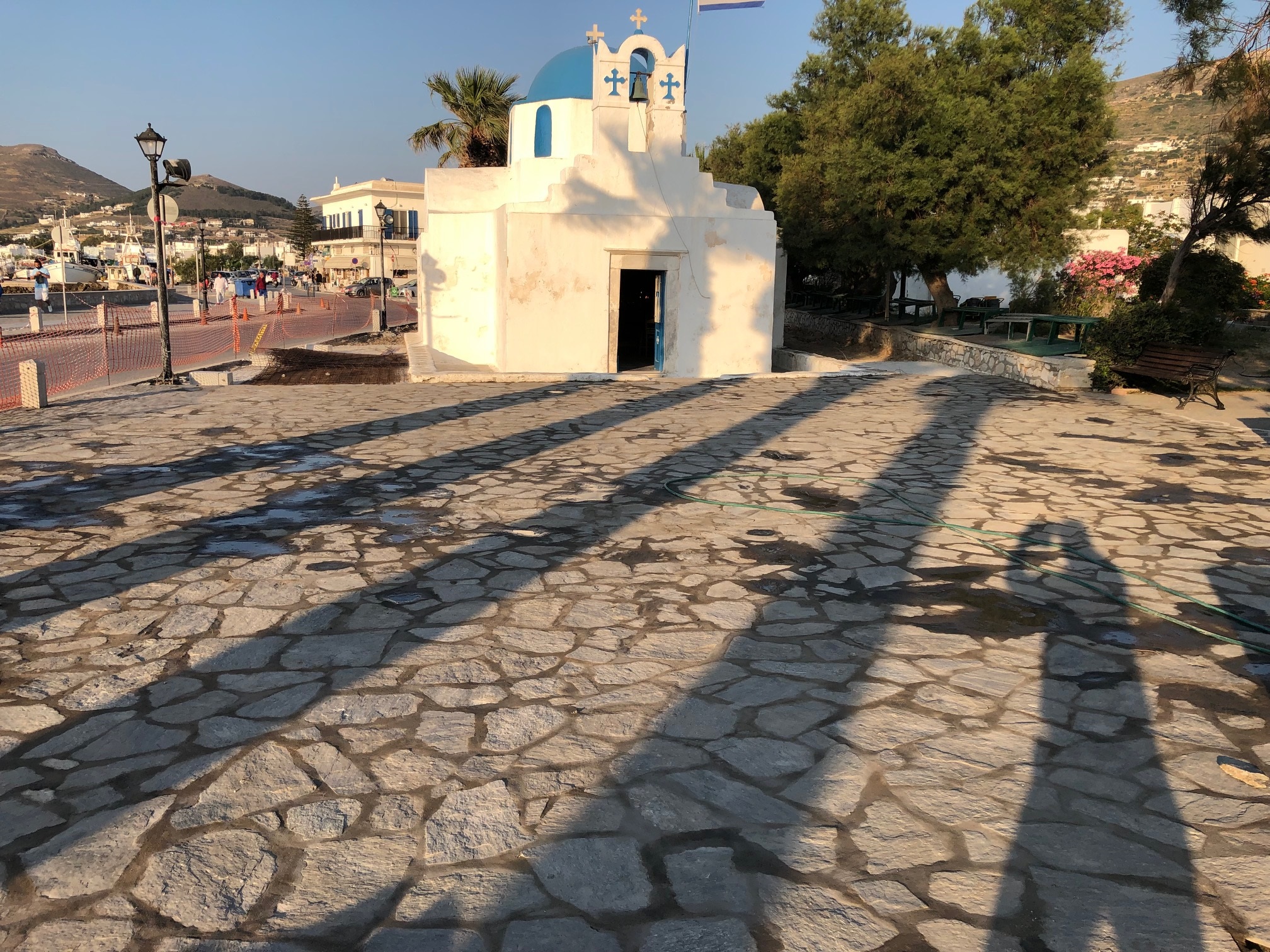 Επιπλέον, την περίοδο αυτή και στα πλαίσια του τεχνικού προγράμματος πραγματοποιούνται πλακοστρώσεις σε επιλεγμένα σημεία στην Παροικιά και τη Νάουσα. Πιο συγκεκριμένα, στην Παροικιά, περιμετρικά του Αγίου Νικολάου έχει προγραμματιστεί η αποξήλωση της υπάρχουσας πλακόστρωσης και η τοποθέτηση νέων πλακών χωρικού τύπου προέλευσης Πάρου, η ανακατασκευή ραμπών στα λιβάδια, η ανακατασκευή σκάλας εντός οικισμού με διόρθωση των διαστάσεων καθώς και η επιδιόρθωση δύο μικρών πλακόστρωτων οδών, με κατάλληλες κλίσεις ώστε να επιτυγχάνεται η απορροή των υδάτων. Τέλος, στον παραδοσιακό οικισμό στην Νάουσα, έχει προγραμματιστεί η ανακατασκευή του αρμολογήματος σε πλακόστρωτη οδό.