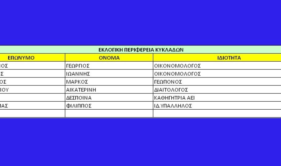 Για τις Κυκλάδες, οι υποψήφιοι είναι οι εξής: