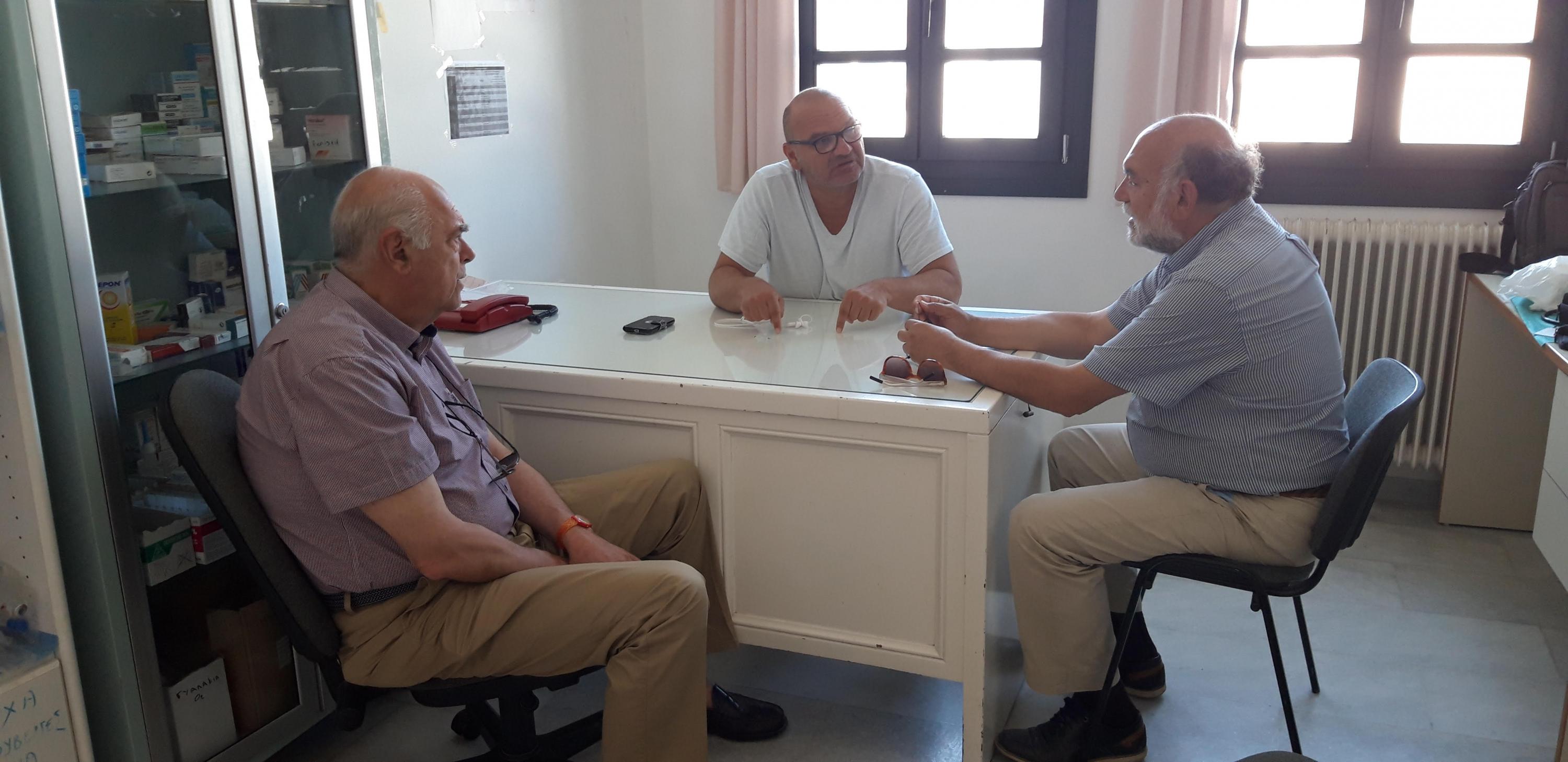 Επισκέφθηκαν επίσης το Κέντρο Υγείας του νησιού, όπου συνομίλησαν με τους εργαζόμενους ενώ είχαν ιδιαίτερη συνάντηση με τον επιστημονικό διευθυντή Δημήτρη Αλβανό. Στη συνέχεια, περιόδευσαν στη Χώρα και συζήτησαν με καταστηματάρχες και κατοίκους του νησιού.
