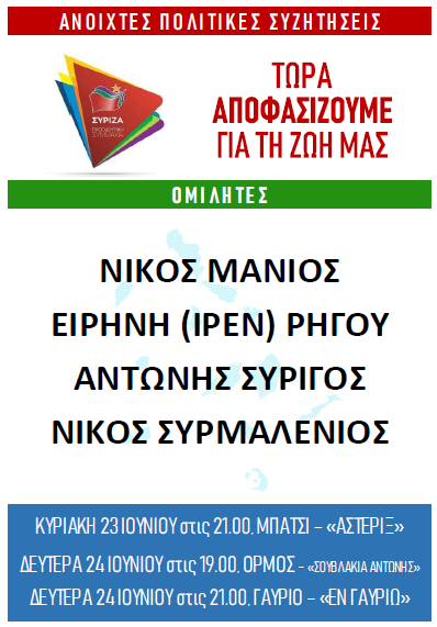 Περιοδεία των υποψήφιων βουλευτών του ΣΥΡΙΖΑ στο νησί της Άνδρου, τις προσεχείς ημέρες.