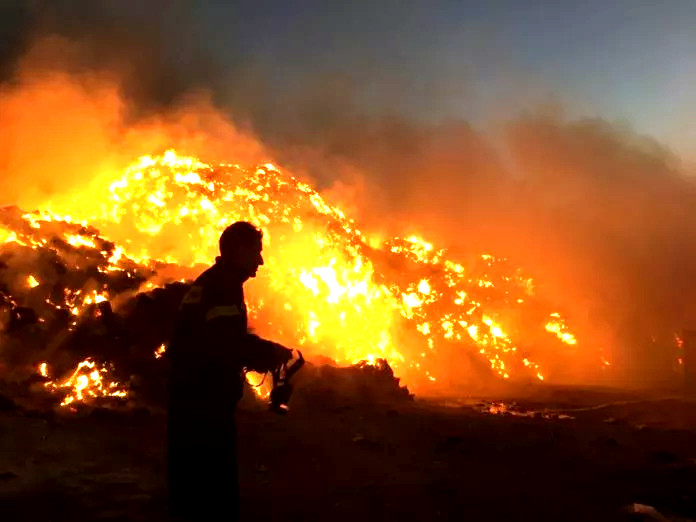 Η φωτιά ξέσπασε το απόγευμα της Τετάρτης, 3 Ιουλίου, στο χώρο του δεματοποιητή και άμεσα ειδοποιήθηκε η Πυροσβεστική Υπηρεσία και οι αρμόδιοι αιρετοί.