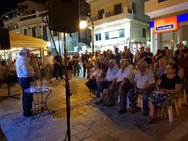 Τελειώνοντας την ομιλία του είπε ότι θα πρέπει να καταλάβουμε τι θέλουμε. Να συνεχίσουμε το έργο μας ή να γυρίσουμε πίσω σε μία δεξιά που γνωρίζουμε το πρόγραμμά της αφού έχει κυβερνήσει τη χώρα και την είχε οδηγήσει στα μνημόνια.
