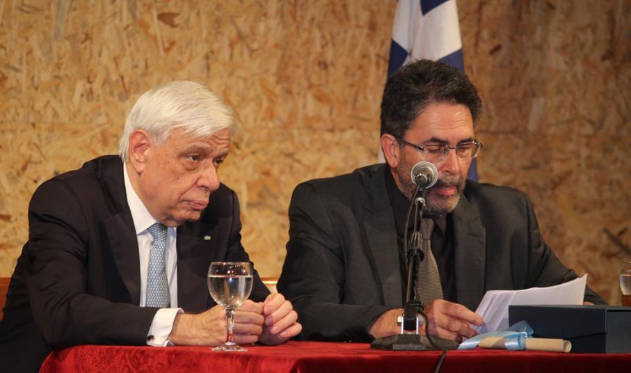 Ο Δήμαρχος καλωσόρισε τον ΠτΔ στη Νάξο, «τον τόπο, που επί χιλιάδες χρόνια γεννά και προάγει τον πολιτισμό, την παιδεία και τις τέχνες. Ως ελάχιστο οφειλόμενο χρέος του Δήμου προς εσάς, τόσο για την αποδοχή της πρόσκλησης, όσο και για τη μεγάλη προσφορά και συνδρομή σας στο δημόσιο βίο της χώρας, στην επιστήμη, την πνευματική ζωή, την ενίσχυση της τοπικής αυτοδιοίκησης και των θεσμών, το Δημοτικό μας Συμβούλιο αποφάσισε ομόφωνα, να σας ανακηρύξουμε επίτιμο δημότη».