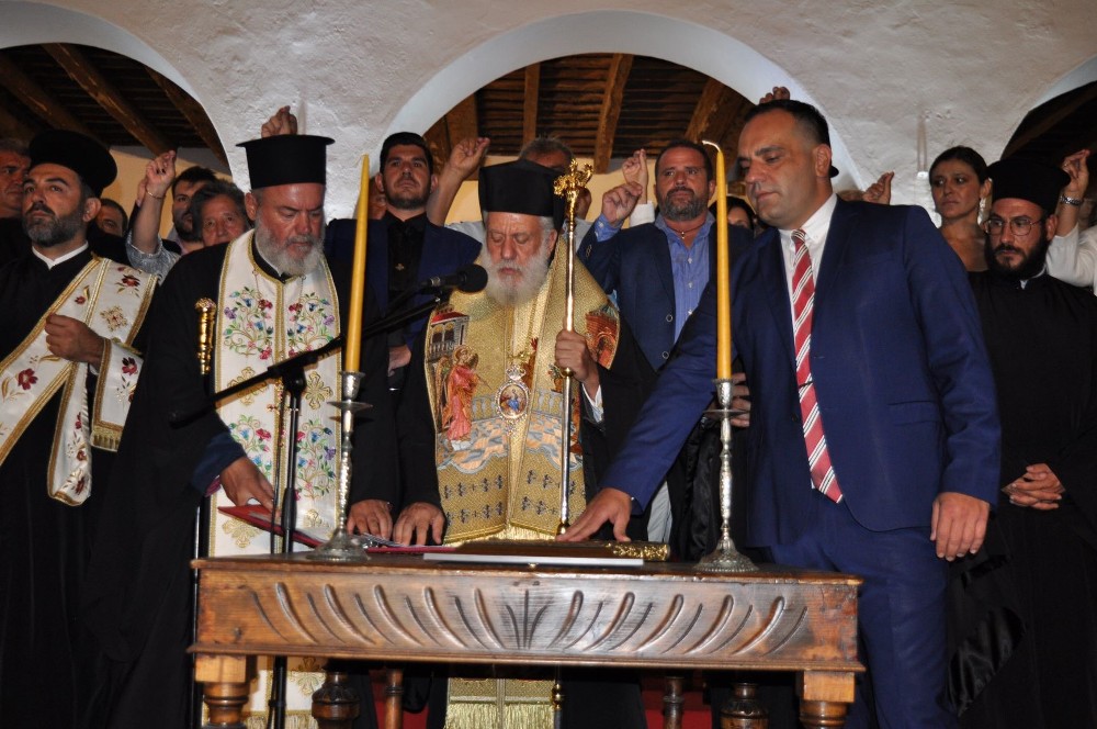 Την ορκωμοσία των συμβούλων και του Δημάρχου τέλεσε ο Σεβ. Μητροπολίτης, κ.κ. Δωρόθεος Β', ενώ παρόντες ήταν κυβερνητικοί εκπρόσωποι και τοπικοί βουλευτές, εκπρόσωποι των Αρχών, ο Περιφερειάρχης Ν. Αιγαίου, εκπρόσωποι των τοπικών φορέων και πλήθος πολιτών.