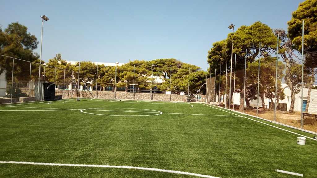 1ο Δημοτικό: Αντικατάσταση μπασκετών γηπέδου καλαθοσφαίρισης, εργασίες αποκατάστασης εξωτερικών επιχρισμάτων, αντικατάσταση και χρωματισμός κεντρικής πέργκολας και επισκευές λοιπών περγκολών. Προβλέπονται εργασίες αντικατάστασης κουφωμάτων.