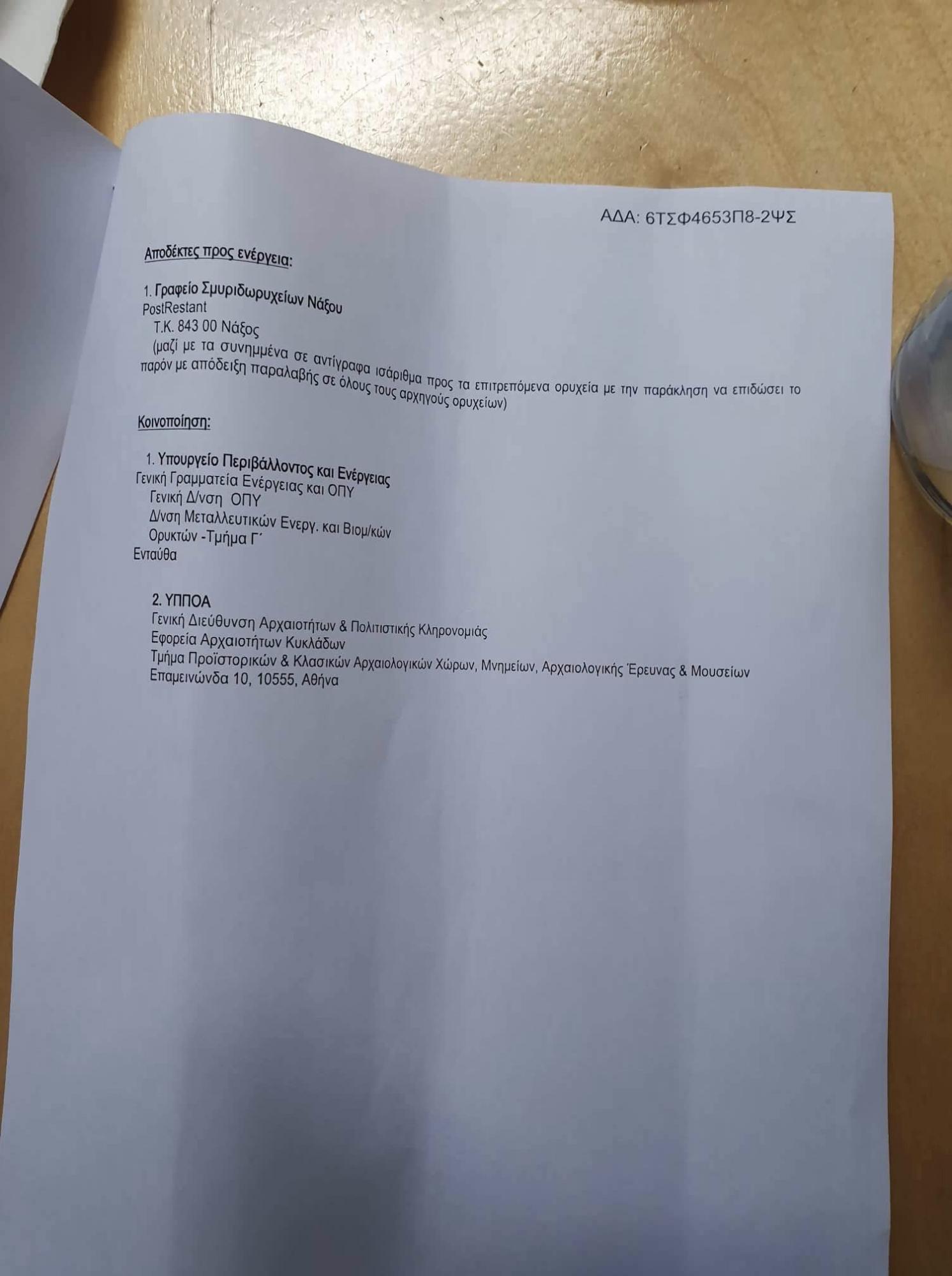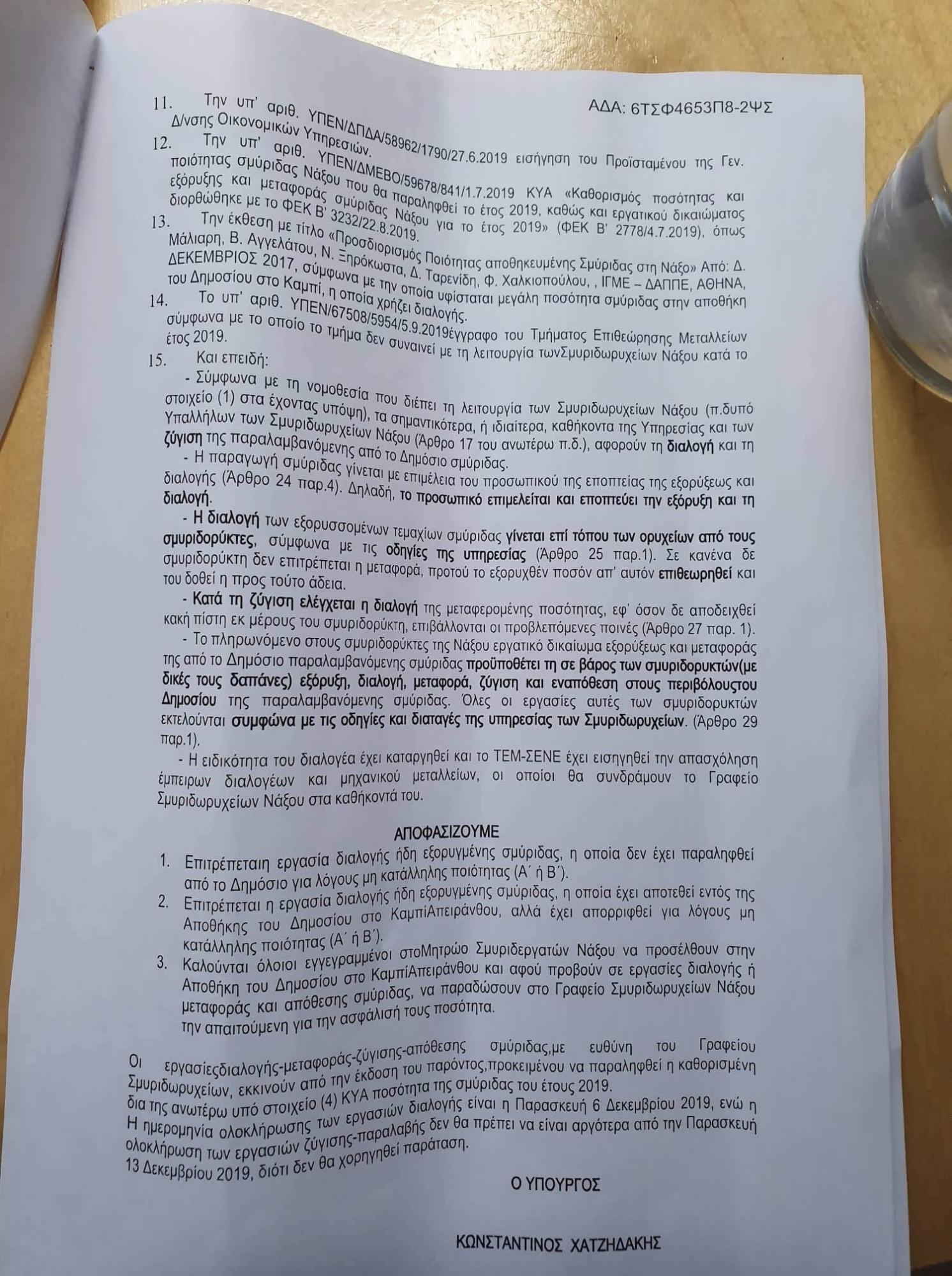 Με σημερινή απόφαση του Υπουργείο Περιβάλλοντος δόθηκε προσωρινή λύση, που ικανοποιεί μερικώς όλα τα μέρη, στο θέμα της σμύριδας για το άμεσο πρόβλημα και εργαζόμαστε για να δοθεί μια βιώσιμη μόνιμη λύση στο θέμα που ταλανίζει τους κατοίκους της ορεινής Νάξου. Πραγματοποιείται εντατική και σφαιρική ενημέρωση του Υπουργείου.