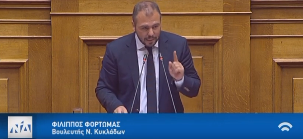 Για το νέο πλαίσιο που διαμορφώνεται στο θέμα της χορήγησης ασύλου, φύλαξης των συνόρων και γενικότερης διαχείρισης του μεταναστευτικού ζητήματος, μίλησε στην Ολομέλεια της Βουλής ο Βουλευτής Κυκλάδων της Νέας Δημοκρατίας, Φίλιππος Φόρτωμας, κατά τη συζήτηση του νομοσχεδίου του υπουργείου Προστασίας του Πολίτη για το άσυλο, υπό τον τίτλο «Περί Διεθνούς Προστασίας και άλλες διατάξεις», το οποίο ψηφίστηκε με ευρεία πλειοψηφία.