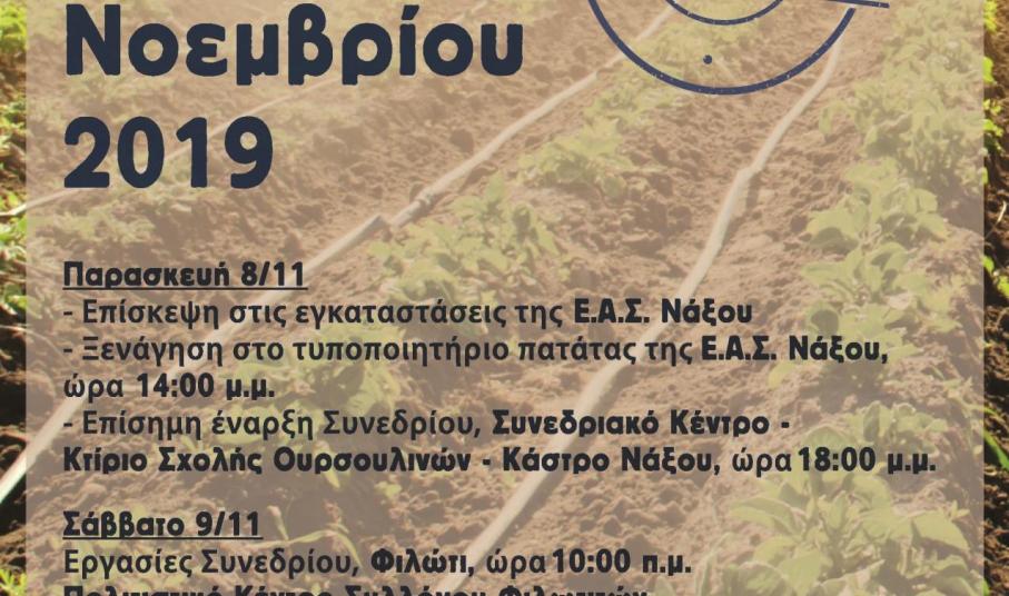 Η Ένωση Αγροτικών Συνεταιρισμών Νάξου καλεί όλους τους Αγρότες της Νάξου (Νέους και μη!) να δώσουν δυναμικό «παρών» στο Συνέδριο, όχι μόνο για να στείλουν το δικό τους μήνυμα στα κέντρα λήψης των αποφάσεων αλλά και για να ενημερωθούν για τις εξελίξεις και όλα όσα συμβαίνουν στον κλάδο