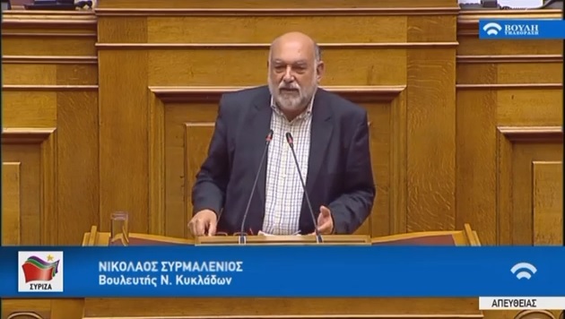 Ομιλία του βουλευτή Κυκλάδων Νίκου Συρμαλένιου στην Ολομέλεια της Βουλής στις 14 Νοεμβρίου 2019