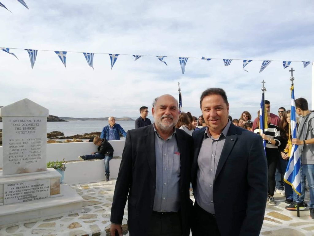 Τέλος την Κυριακή 24/11, ο βουλευτής Κυκλάδων επισκέφθηκε την Αντίπαρο και συμμετείχε στην εκδήλωση υπό την αιγίδα του Δήμου για την επέτειο της Εθνικής Αντίστασης, που πραγματοποιήθηκε στην περιοχή του Αγίου Γεωργίου, όπου κατά τη διάρκεια της κατοχής διαδραματίστηκαν σημαντικά γεγονότα, που οδήγησαν στη φυλάκιση και εκτέλεση Ελλήνων πατριωτών και Αντιπαριωτών από τους γερμανούς και ιταλούς κατακτητές. Το ιστορικό των γεγονότων παρουσίασε ο δήμαρχος Τάσσος Φαρούπος