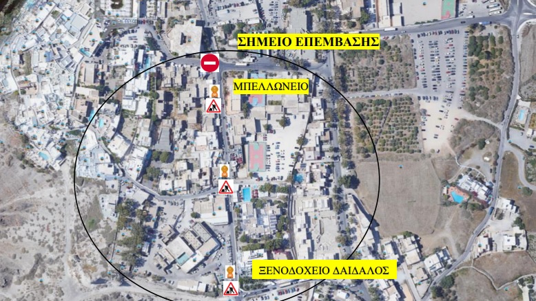 Η Δ.Ε.Υ.Α. Θήρας γνωστοποιεί την διακοπή της κυκλοφορίας στην περιοχή των Φηρών, από το ύψος του Μπελλώνειου έως και το Ξενοδοχείο «Δαίδαλος», λόγω απαραίτητων έργων αποκατάστασης βλάβης στο δίκτυο ύδρευσης της Δ.Ε.Υ.Α.Θ..