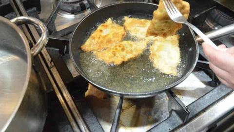 Το επόμενο μαγείρεμα της Ευαγγελίτσας ήταν οι Αμοργιανές χορτόπιτες – που όπως και σ’ ολες τις Κυκλάδες οι πίτες – τηγανίζονται στο ελαιόλαδο.