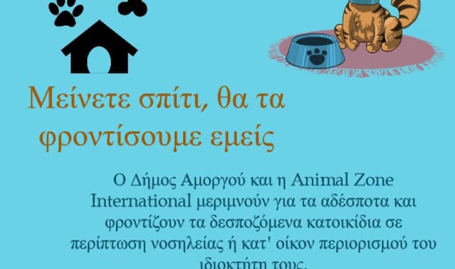 Ο Δήμος Αμοργού & η “ Animal Zone International” μεριμνούν για τα αδέσποτα και φροντίζουν για τα δεσποζόμενα κατοικίδια σε περίπτωση νοσηλείας ή κατ’οίκον περιορισμό του ιδιοκτήτη τους.