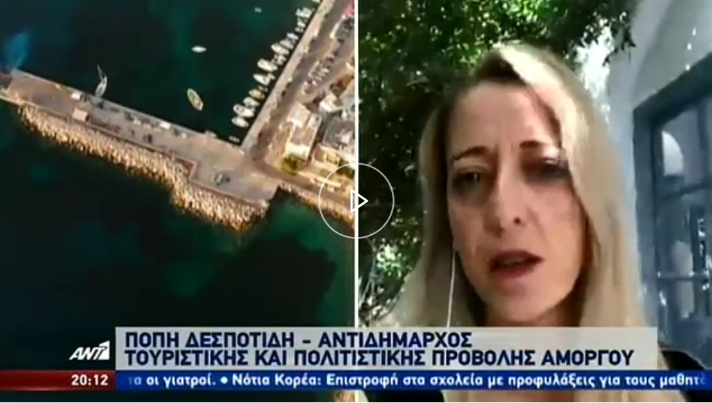 Στην τηλεόραση του ΑΝΤ1 και στο κεντρικό δελτίο ειδήσεων με το Νίκο Χατζηνικολάου μίλησε η Αντιδήμαρχος Τουριστικής και Πολιτιστικής Προβολής, κα Πόπη Δεσποτίδη. Το ρεπορτάζ αφορούσε την αγωνία των επαγγελματιών του Αιγαίου για την επόμενη μέρα στον τουρισμό.ά του Αιγαίου για την επόμενη μέρα στον τουρισμό.