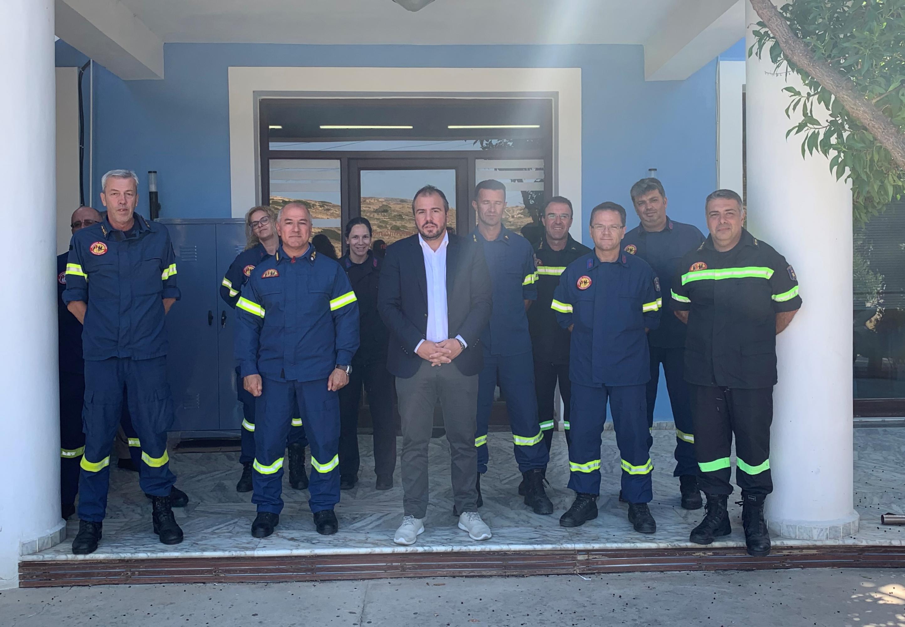Στη συνέχεια ο κ. Φόρτωμας επισκέφθηκε το κτίριο που στεγάζονται οι Υπηρεσίες του Πυροσβεστικού Σώματος και συναντήθηκε με τους επικεφαλής Αξιωματικούς, τον Αρχιπύραρχο Βασίλη Κοκμοτό, τον Πύραρχο Χριστόδουλο Παπαμιχαήλ, Διοικητή Πυροσβεστικών Υπηρεσιών Νομού Κυκλάδων και τον Επιπυραγό Δημήτρη Σκόνδρα, Διοικητή της Πυροσβεστικής Υπηρεσίας Ερμούπολης. Κατά τη διάρκεια της συνάντησης τους, συζητήθηκαν θέματα που αφορούν την  πυρασφάλεια, την πυροπροστασία και την πολιτική προστασία κυρίως στα νησιά των Κυκλάδων. Ο κ. Φόρτωμας ενημερώθηκε αναλυτικά για τις επικρατούσες συνθήκες στις Πυροσβεστικές Υπηρεσίες των Κυκλάδων, τις υποδομές τους και την ανάγκη στελέχωσής τους με ανθρώπινο δυναμικό. Επιπλέον, τόνισε την σημαίνουσα σημασία που έχει, με κυβερνητική πρωτοβουλία, η ίδρυση και λειτουργία εποχικού Πυροσβεστικού Κλιμακίου Δ.Ε. Πανόρμου Τήνου, Κορθίου Άνδρου και Κορώνου Νάξου.