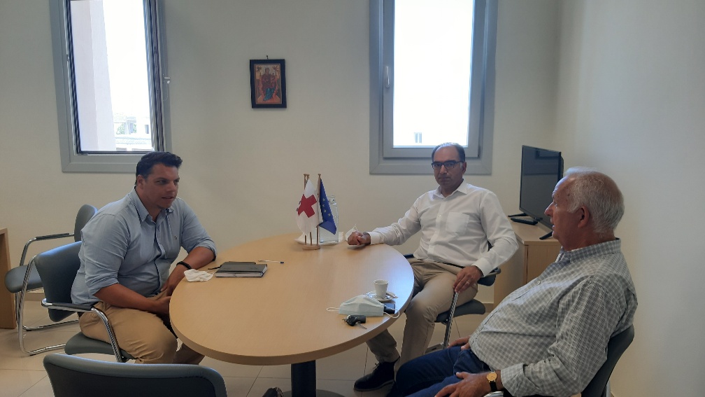 Αρχικά ο Αντιπεριφερειάρχης μετέβη στην έδρα της Π.Ε. Θήρας όπου είχε συνάντηση εργασίας με τον Έπαρχο Θήρας Χαράλαμπο Δαρζέντα, τα στελέχη της Διεύθυνσης Δημόσιας Υγείας και Κοινωνικής Μέριμνας Κυκλάδων και με επιχειρηματίες  υγειονομικών καταστημάτων. Στην διάρκεια της συνάντησης επισημάνθηκε με τρόπο απόλυτα σαφή ότι όλες οι επιχειρήσεις και οι εργαζόμενοι των καταστημάτων θα πρέπει να εφαρμόζουν τις οδηγίες του Ε.Ο.Δ.Υ. και των αρμόδιων υπαλλήλων της Περιφέρειας Νοτίου Αιγαίου.