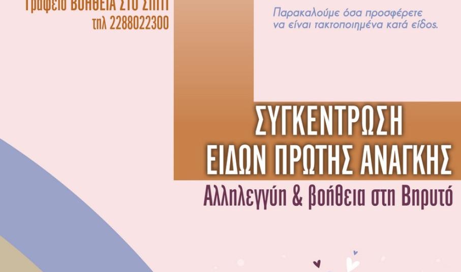 Για όσους το επιθυμούν, η συγκέντρωση των παραπάνω ειδών θα γίνεται από την Τρίτη 18 έως και την Παρασκευή 21 Αυγούστου 2020, από τις 09.00 έως τις 14.00, στο γραφείο Βοήθεια στο Σπίτι στην Κορησσία (τηλ. 2288022300).