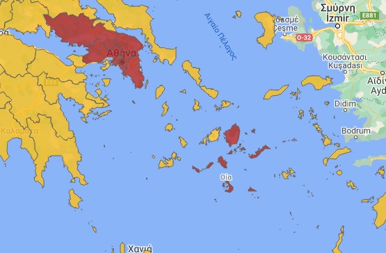 Υπενθυμίζεται πως στις Κυκλάδες στο κόκκινο... βρίσκονται τις τελευταίες ημέρες και τα νησιά του Επαρχείου Θήρας (Σαντορίνη, Θηρασιά, Ίος, Σίκινος, Φολέγανδρος).