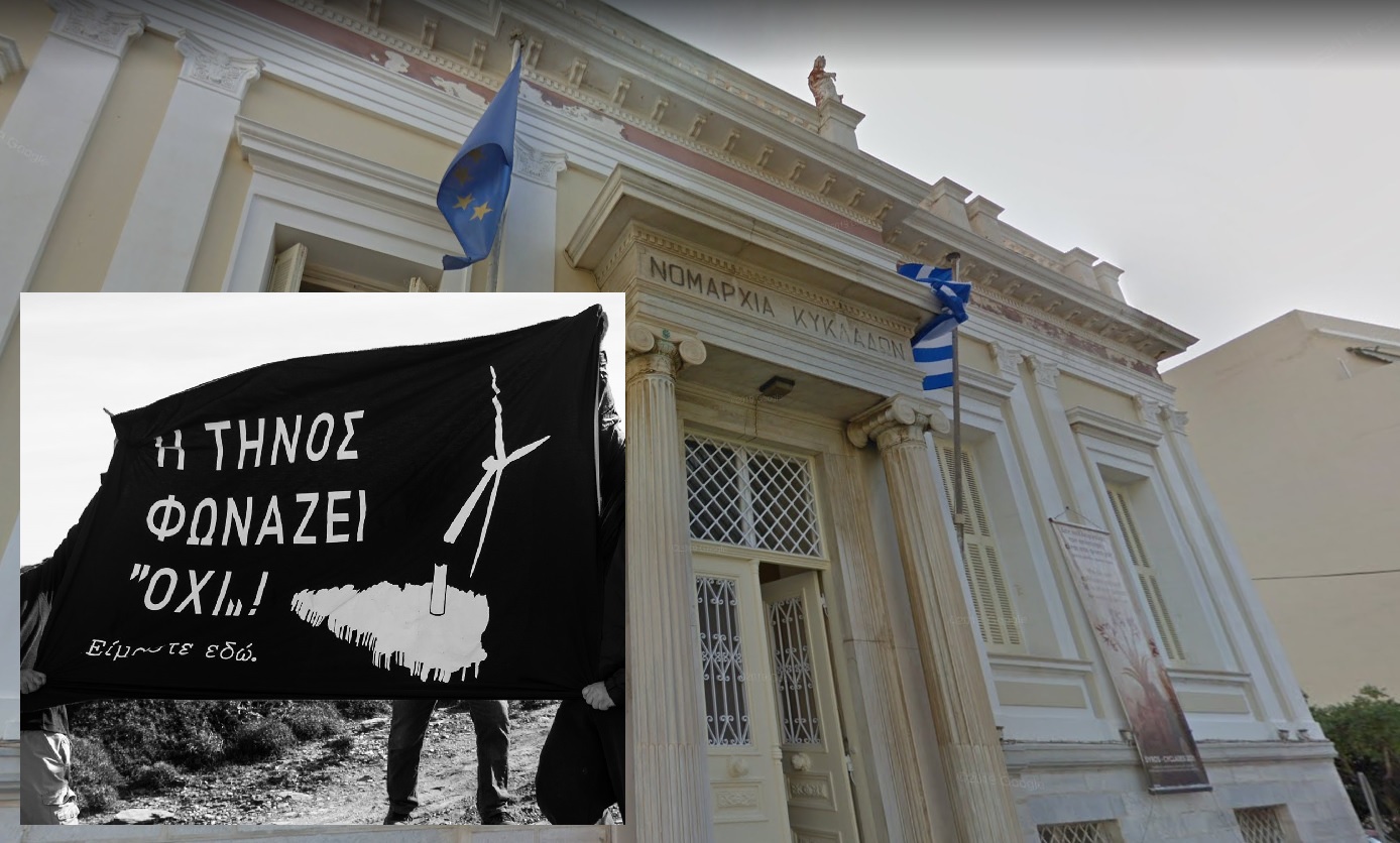 Διευκρινίζουμε ότι η Περιφέρεια είναι ο μοναδικός θεσμός που δε συμμετείχε σε κανένα στάδιο των αδειοδοτήσεων εγκατάστασης των ανεμογεννητριών στην Τήνο.