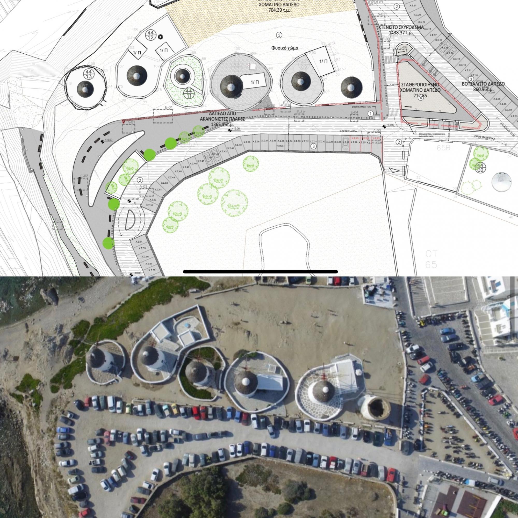 Ειδικότερα, θα εξυπηρετείται η πρόσβαση και διαμονή των κατοίκων και των επισκεπτών στον χώρο, ενώ παράλληλα αναβαθμίζεται ο υφιστάμενος χώρος στάθμευσης, δημιουργούνται θέσεις στάθμευσης ΑΜΕΑ, δημιουργούνται πεζοδρόμια, μονοπάτια και καθιστικές διατάξεις δίδοντας την δυνατότητα απόλαυσης των Μύλων.