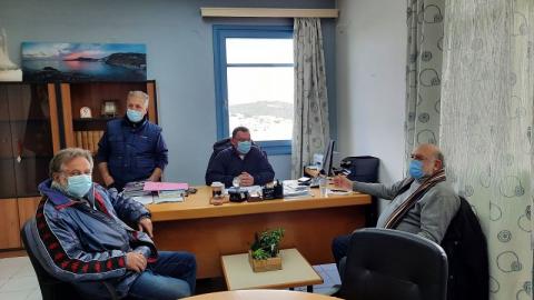 Στο Δημαρχείο συναντήθηκε με το δήμαρχο Μανώλη Μικέλη και τους Αντιδημάρχους Φραγκιό Ζούλια και Νίκο Ζούλια. Στη συνάντηση έγινε εκτενής συζήτηση γύρω από τα τρέχοντα θέματα που απασχολούν το νησί, μεταξύ των οποίων τα απορρίμματα, τα λύματα, την επένδυση στον Καστανά, το χωροταξικό, τη στελέχωση του δήμου κ.α. Είναι σημαντικό ότι προχωράει το φλέγον ζήτημα των διευθέτησης των απορριμμάτων που περιλαμβάνει την διαμόρφωση του ΧΥΤΥ – ΧΥΤΑ, την ασφαλτόστρωση του δρόμου πρόσβασης μήκους 5,5 χλμ, την προμήθεια κάδων κλπ. Επίσης προχώρησε η πλήρης αποκατάσταση, λειτουργία και συντήρηση της μονάδας του βιολογικού στην Τανταλιά, ενώ προχωράει η μελέτη του δικτύου αποχέτευσης και του βιολογικού στον Αδάμαντα και εκκρεμεί ακόμα η χωροθέτηση του βιολογικού των Πολλωνίων. Σε ότι δε αφορά τον Καστανά, σε αναμονή βρίσκεται η εκδίκαση της προσφυγής στο ΣτΕ.