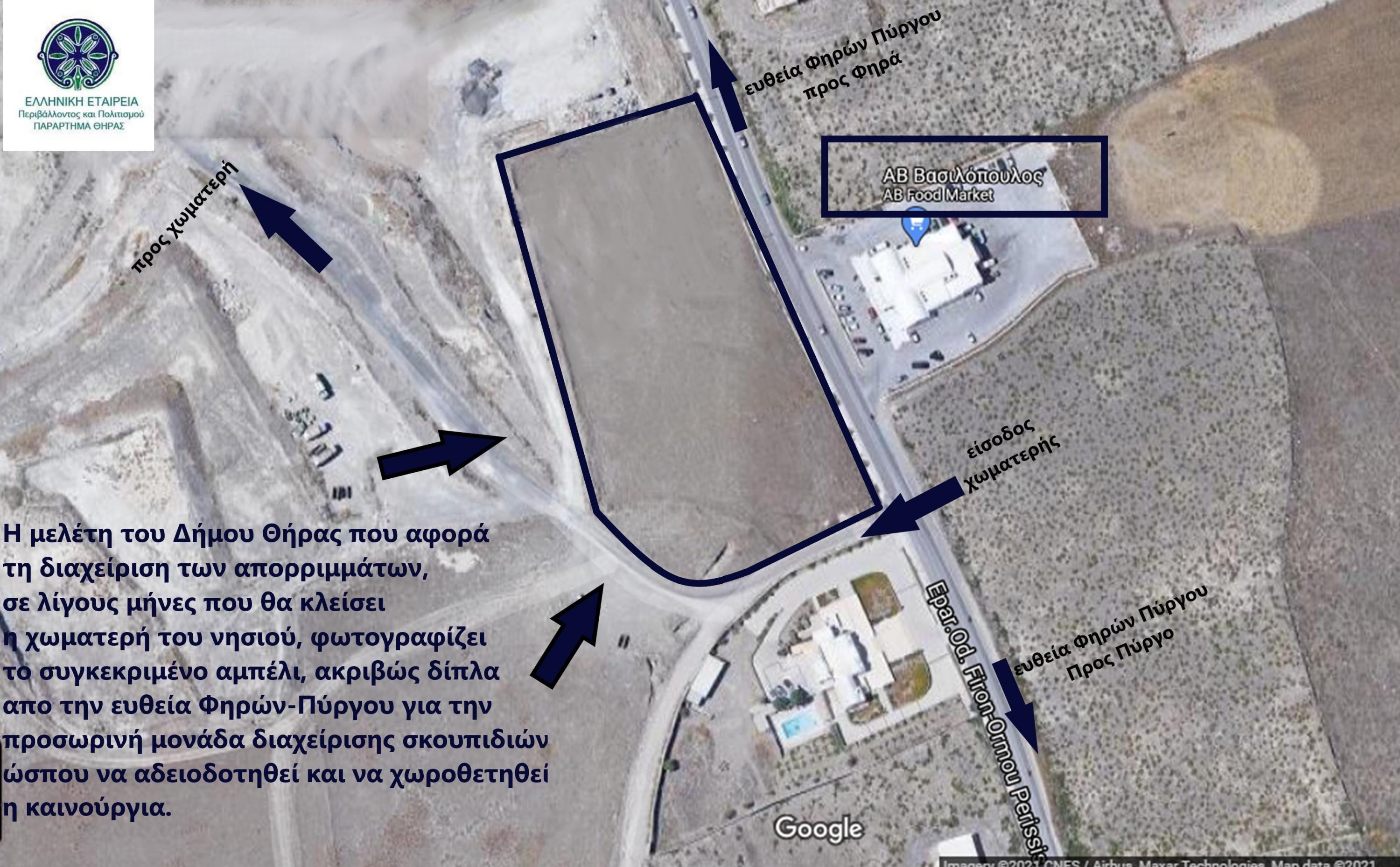 Η Τοπική Επιτροπή Θήρας της Ελληνικής Εταιρείας Περιβάλλοντος και Πολιτισμού (ΕΛΛΕΤ) στις 9/2/21 με επιστολή της προς το Δήμο Θήρας ζήτησε ενημέρωση για το θέμα διαχείρισης των απορριμμάτων. Ο Δήμος Θήρας στις 23/2 κάλεσε την ΕΛΛΕΤ σε τηλεδιάσκεψη με θέμα συζήτησης τη διαχείριση των απορριμμάτων στο νησί.