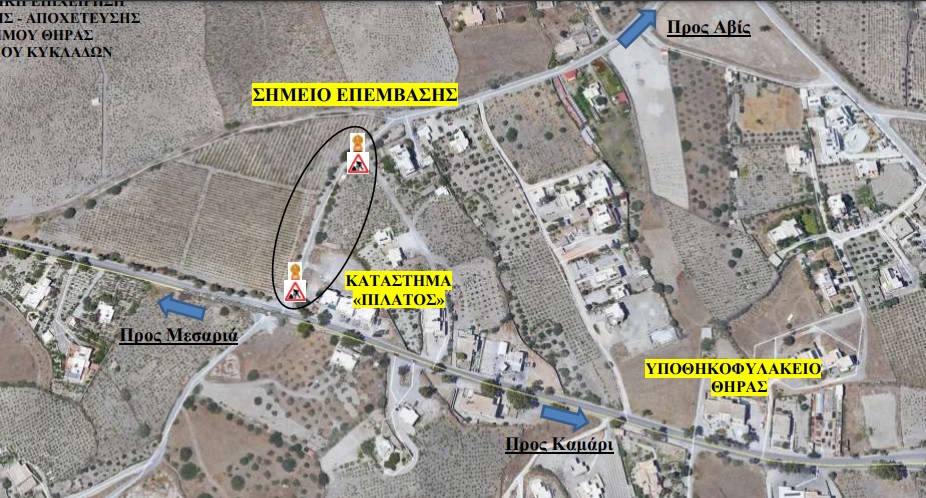 Η Δ.Ε.Υ.Α. Θήρας γνωστοποιεί την παράταση των κυκλοφοριακών ρυθμίσεων στην περιοχή του Καμαρίου, λόγω αναγκαίων εργασιών στο δίκτυο αποχέτευσης της Δ.Ε.Υ.Α.Θ., και συγκεκριμένα από τον κάθετο παράδρομο της Επαρχιακής Οδού Μεσαριάς – Καμαρίου στο ύψος του καταστήματος «Πιλάτος».
